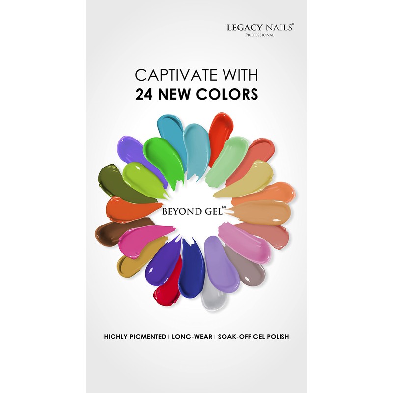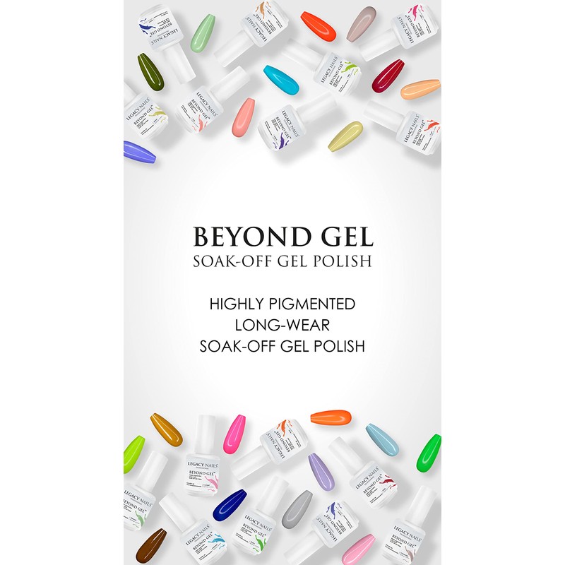 - ✨ Legacy Nails BEYOND GEL is a highly pigmented soak-off gel nail polish.