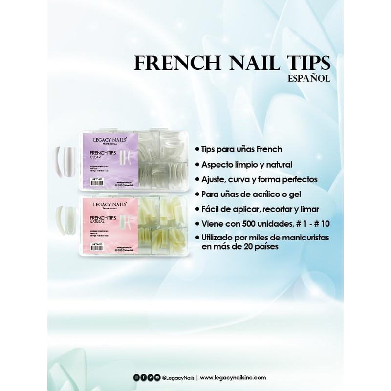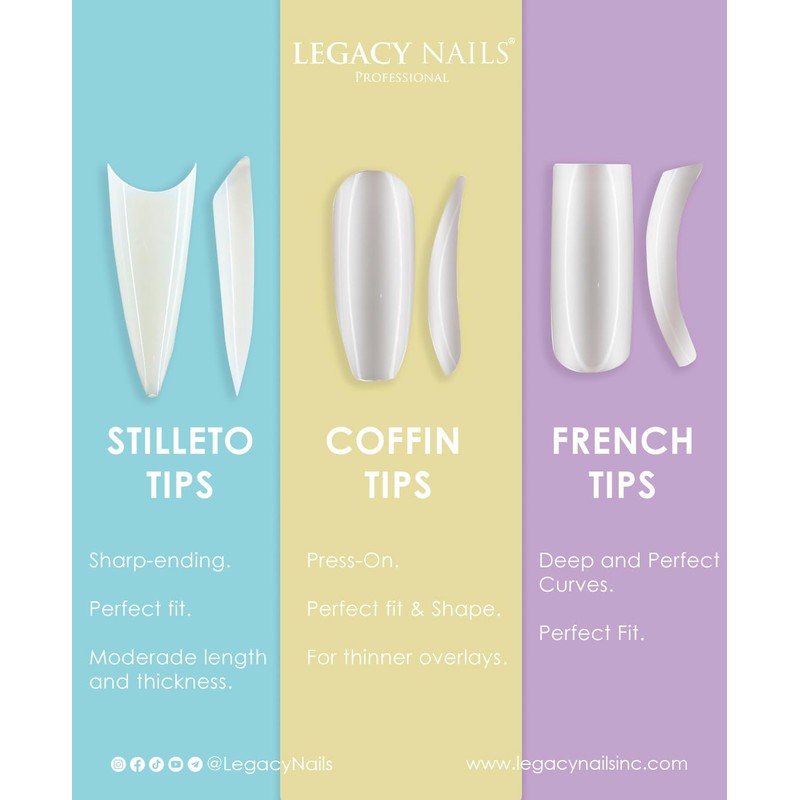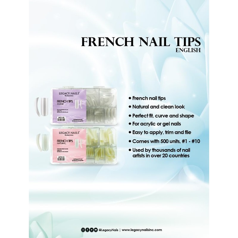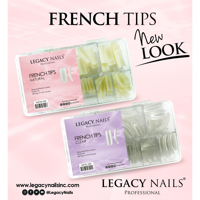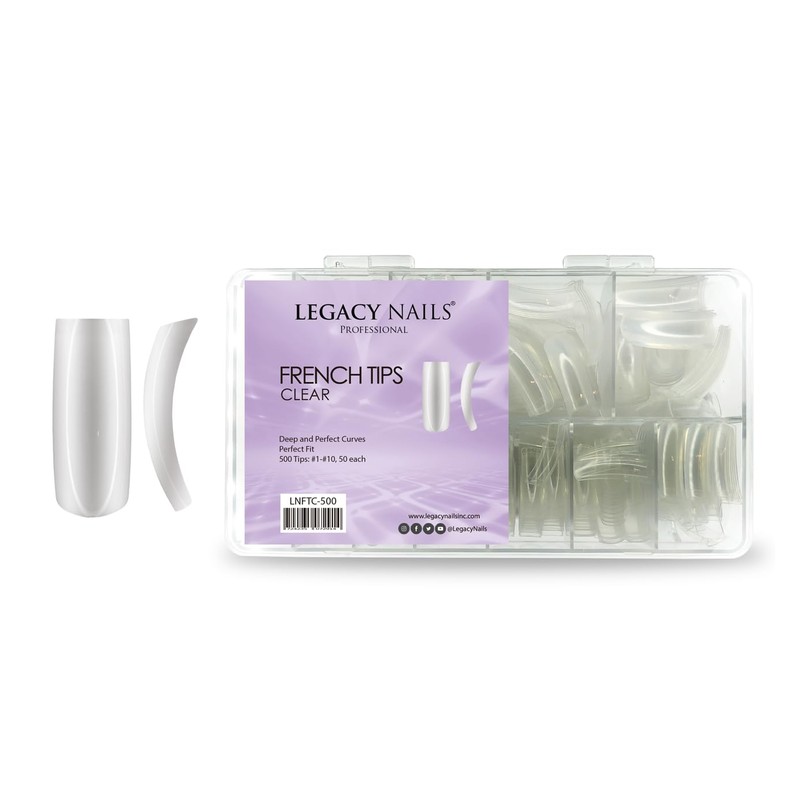 Legacy Nails Professional Nail Tips - Ideal for Acrylic, Gel or Smart Builder Gel Nails (French, Clear)