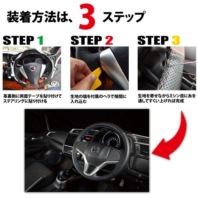 Legacy Outback (BS) Impreza XV (GP) Forester (SJ) DIY Steering Genuine Leather Rewinding Kit [BS Design] [1BS1U13] Left and Right Black Leather Punching x Top and Bottom Black Leather x Black