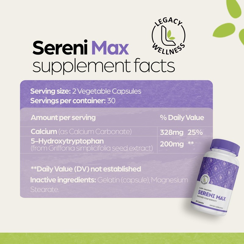 - Feel Great and Enjoy Life to the Fullest - With Legacy Wellness's SERINI-MAX, you can feel great and enjoy life to the fullest. This supplement is designed to help support your mood, sleep, and bone health, so you can live your best life every day. Try it today and experience the benefits for yourself!