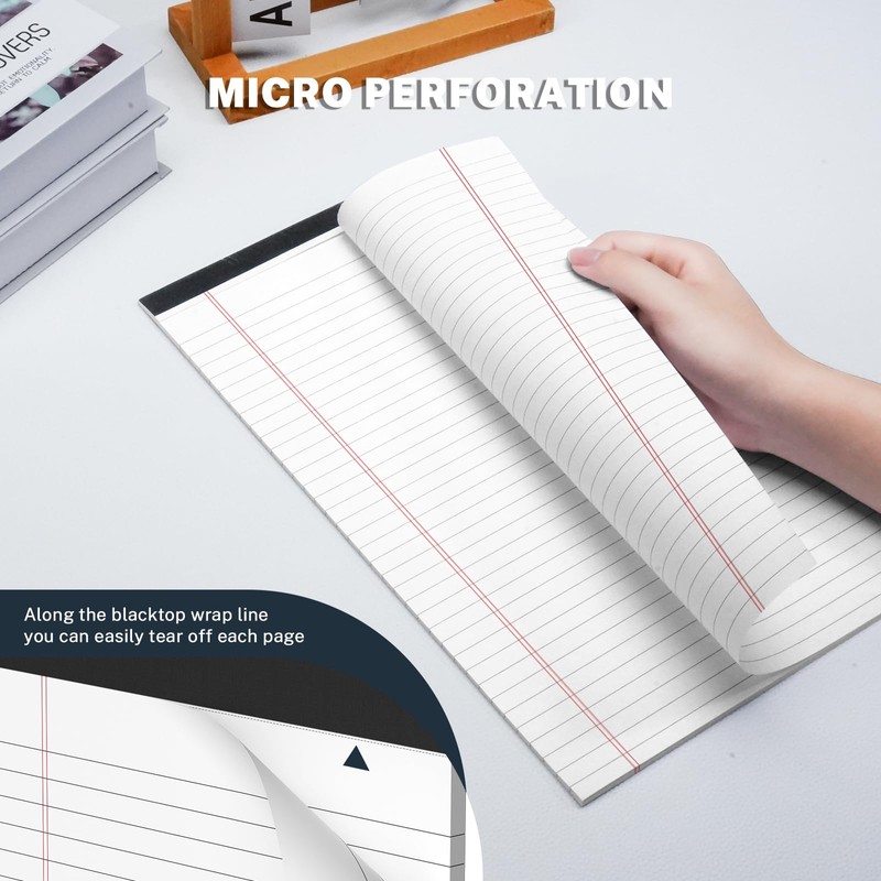 - 【White Lined Paper 8.5 x 14】 The top of these note pads 8.5 x 14 leaves enough space for you to use as a to-do list or shopping list.The left side of the notepad features double red vertical lines that help you organize your notes by classifying content into different sections.