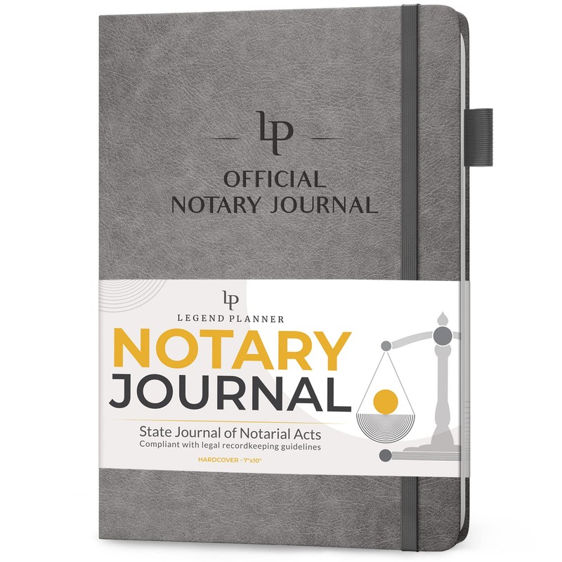 Legend Notary Journal – Hardcover Notary Log Book with Pre-Printed Entries – Notary Public Journal of Notarial Acts – Notary Supplies – 250 Entries, Numbered Pages, 7"x10" (Gray)