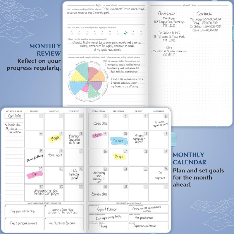 - IMPROVE WORK-LIFE BALANCE & REFLECT REGULARLY – This life planner prompts you to plan monthly activities in 6 life areas and reflect on your progress regularly to see where your life might be lacking.