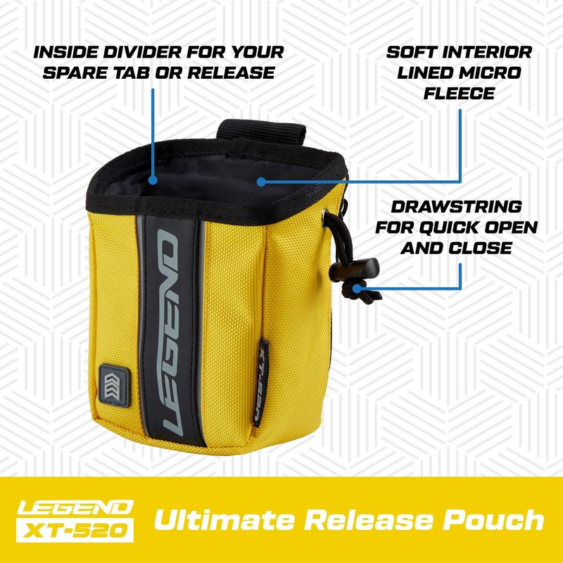 LEGEND - XT520 Quick Release Pouch & Finger Tab Bag (Yellow) | Interior Divider for Better Organization & Storage of Release Aids | Attaches to Standard 2" Belt | Quick Drawstring Closure
