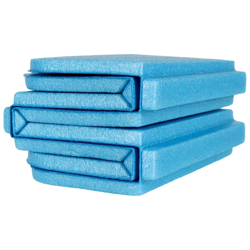 - Box contents: 3 x seat cushions. Dimensions: unfolded approx. 39 x 28 x 0.8 cm, folded approx. 14 x 10 x 6.5 cm (length x width x height). Material: expanded polyethylene (EPE). Weight: approx. 24 g. Colour: blue