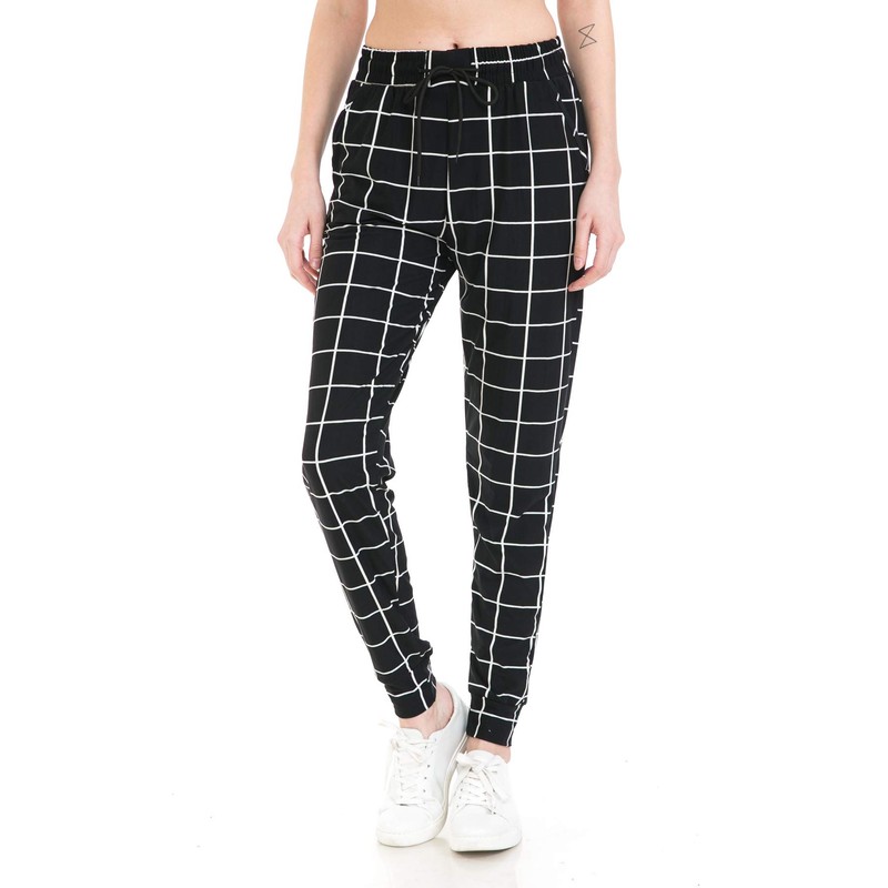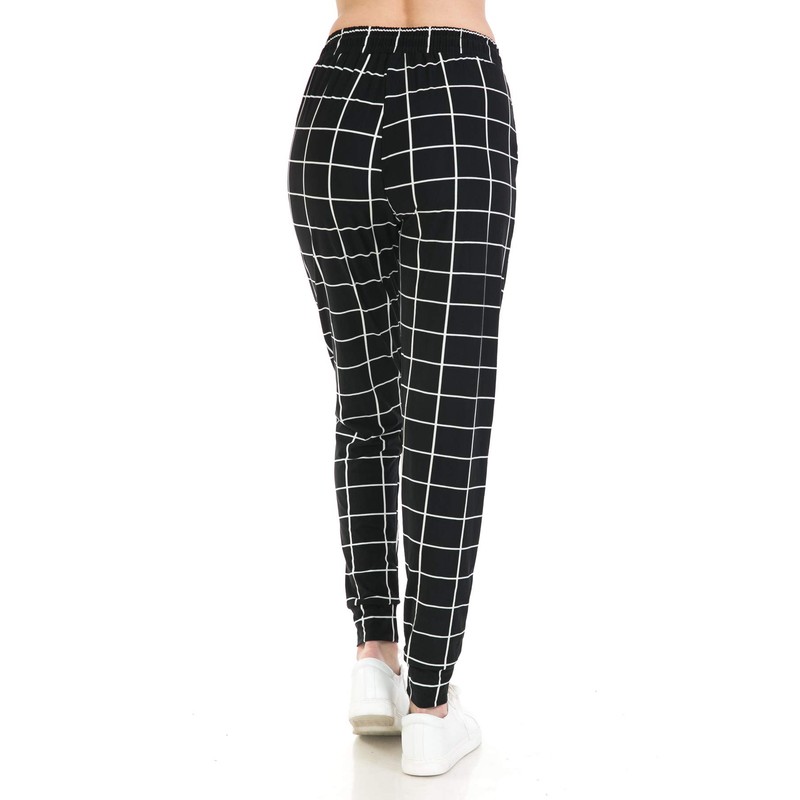 Leggings Depot JGA-Q655-M Checkered Black Print Jogger Pants w/Pockets, Medium