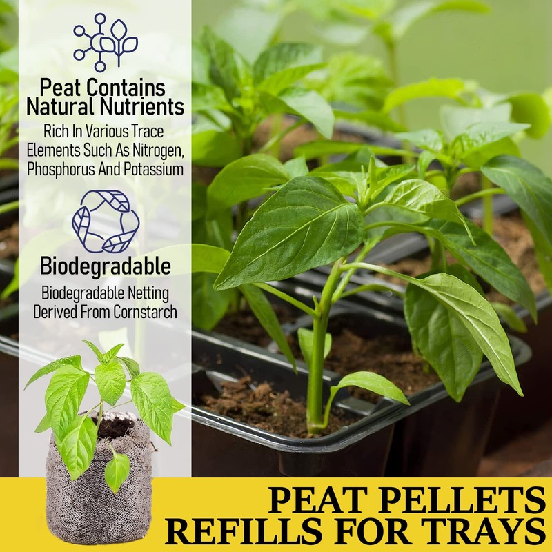 - Premium Material: Peat pellets are made of peat, which has great aeration and water retention, so it is beneficial for plants to help plant growth, and can be completely degraded; They are small and compact, easily and cleanly storable, easy to transition into bigger containers