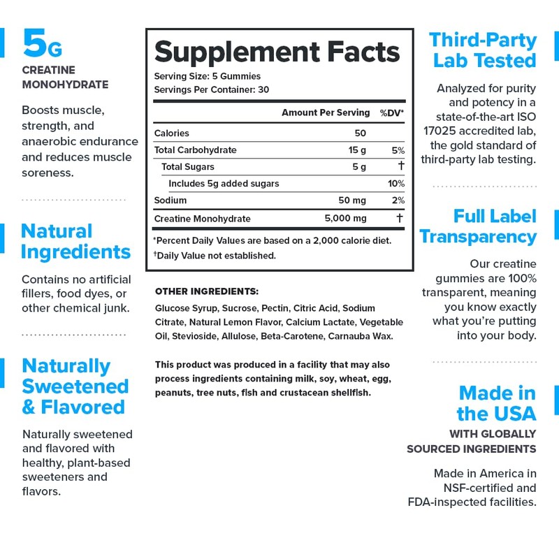 - Get our naturally sweetened and flavored creatine gummy with a clinically effective dose of creatine monohydrate scientifically shown to help you train harder, recover better, and gain muscle and strength faster.