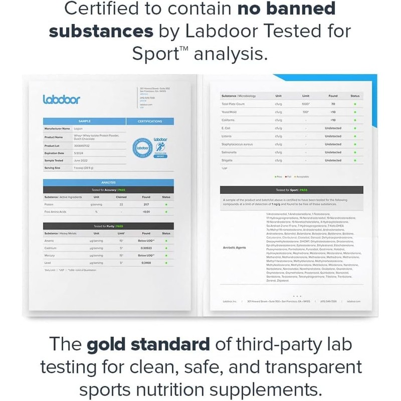 - Tested for purity and potency in an ISO 17025 accredited third-party lab, and independently certified to contain no contaminants or banned substances by Labdoor. Every bag of our Whey+ protien powder is guaranteed to provide exactly what the label claims and nothing else.