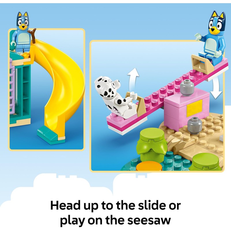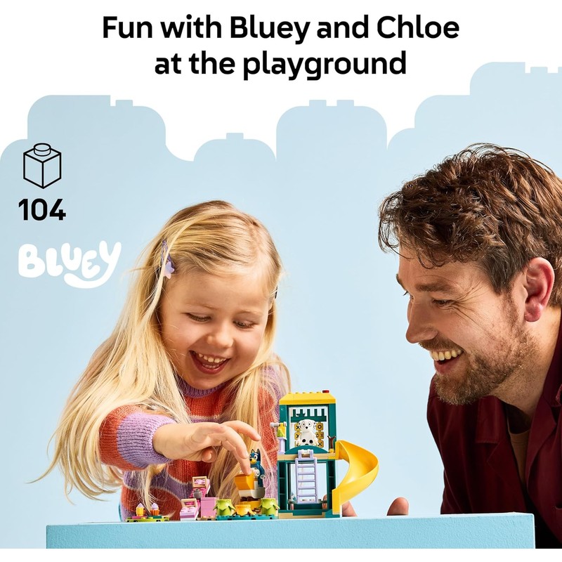 LEGO Bluey toy – Playground Fun with Bluey and Chloe is a fun building toy for 4+ year old girls and boys, featuring characters and activities from the Bluey TV show in a fun LEGO construction set