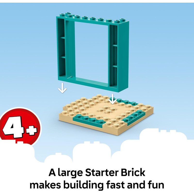 Many ways to play – This LEGO 4+ set includes a rotating pelican ride, three plants for jumping fun, a tower with a telescope and a cosy picnic area with drinks and cakes