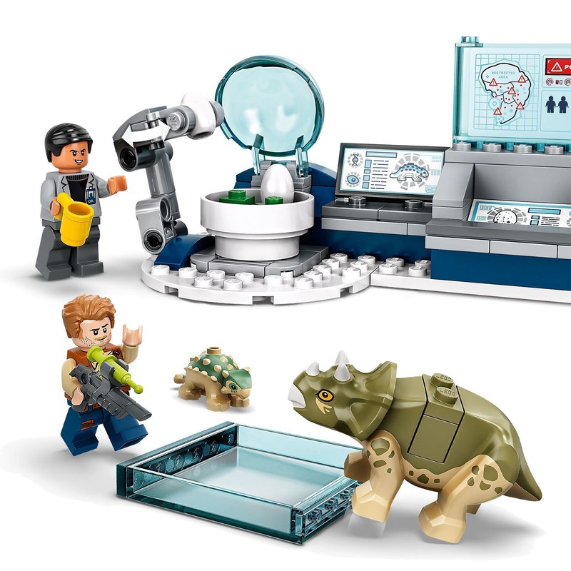 - Includes 2 minifigures (Dr. Wu, Owen Gradiy), Baby Ankyosaurus and Triceratops dinosaur figures, so you can freely create exciting stories of scientific new discovery and dinosaur escape