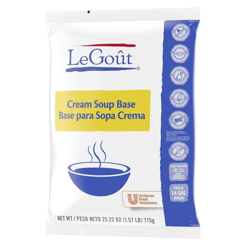An invaluable asset for any kitchen, LeGout Cream Soup Base delivers exceptional performance and versatility that chefs can trust. This instant soup base withstands heat and resists breakdown better than a from-scratch base, making it ideal for preparing alfredo and cheese sauce and tackling other demanding recipes. With its smooth, rich cream texture and delicious flavor, it is ideal for creating savory cream soups, white sauces, casseroles, chowders, and more. The vegetarian cream soup base prepares in minutes; simply blend the soup mix into warm water, whisk until smooth, add other desired ingredients, and heat. To help minimize waste, this white sauce mix can be frozen and thawed for easy reuse.