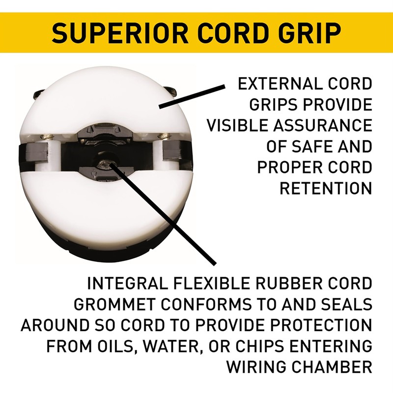 - Quick-thread assembly screws and cord-grip screws come backed-out, ready-to-wire