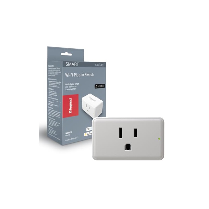 Legrand Radiant® Wi-Fi Matter Smart Plug Matter Hub Required 15A, Easy Setup, Enhanced Compatibility with Apple HomeKit, Google Home, Alexa & SmartThings, Easy Wi-Fi Connectivity w/Matter (1 Pack)