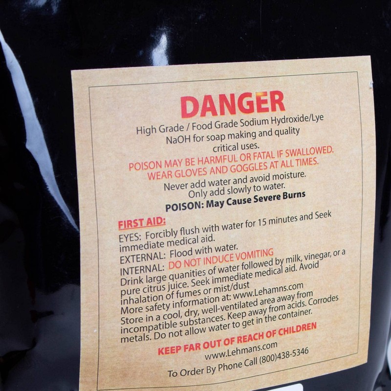 - USA Made. Always follow the safety warnings on the package when handling sodium hydroxide and wear the proper protective gear