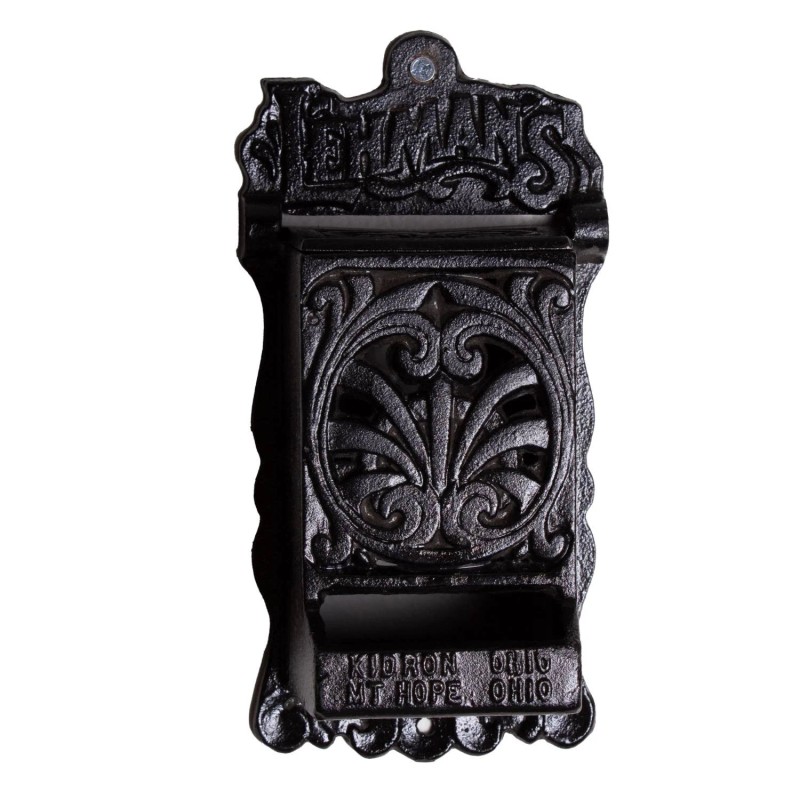 Lehman's Wall Mounted Matchbox Holder, Cast Iron Match Dispenser, Glossy Black