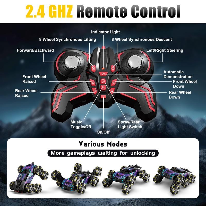 Lehoo Castle 8 Wheels RC Stunt Car Toys, 2.4Ghz Remote Control Cars,Transform Drift Off Road for kids, with Lights & Music, 360° Rotating, Birthday Gifts Ideas for Kids:_1 Set