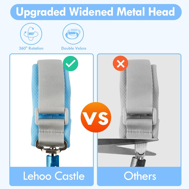- Keep Your Baby within Reach - The 1.5m-long spring rope built in 49pcs steel wires is connected with the 360 degrees swivel head, so that your children have more free space to play outdoors in your sight without tripping over.