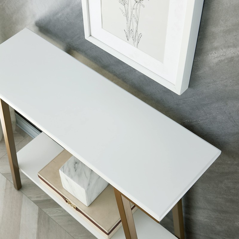Leick Home 11431-WT Mixed Metal and Wood Hall Console Sofa Table, White/Gold 30 in x 10 in x 30 in, no drawer
