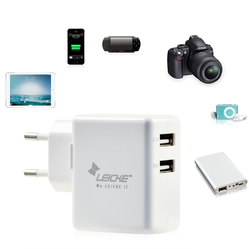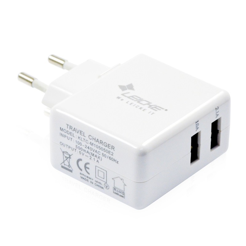Leicke Wall Charger Adapter/Travel Charger with USB Input | 2 USB 5V - Universal Charger