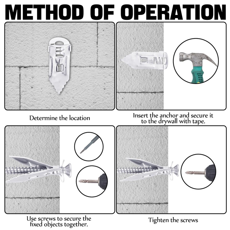 - Versatile Application Range: our drywall anchor screw kit is adaptable, suitable for hollow bricks, gypsum boards, lightweight bricks, drywalls and more; Ideal for mounting photo frames, shelves, curtains, clocks, plants, shelves, cabinets, bookshelves, wall lamps, televisions, blackboards, and more, they meet all your interior decorating and organizing needs