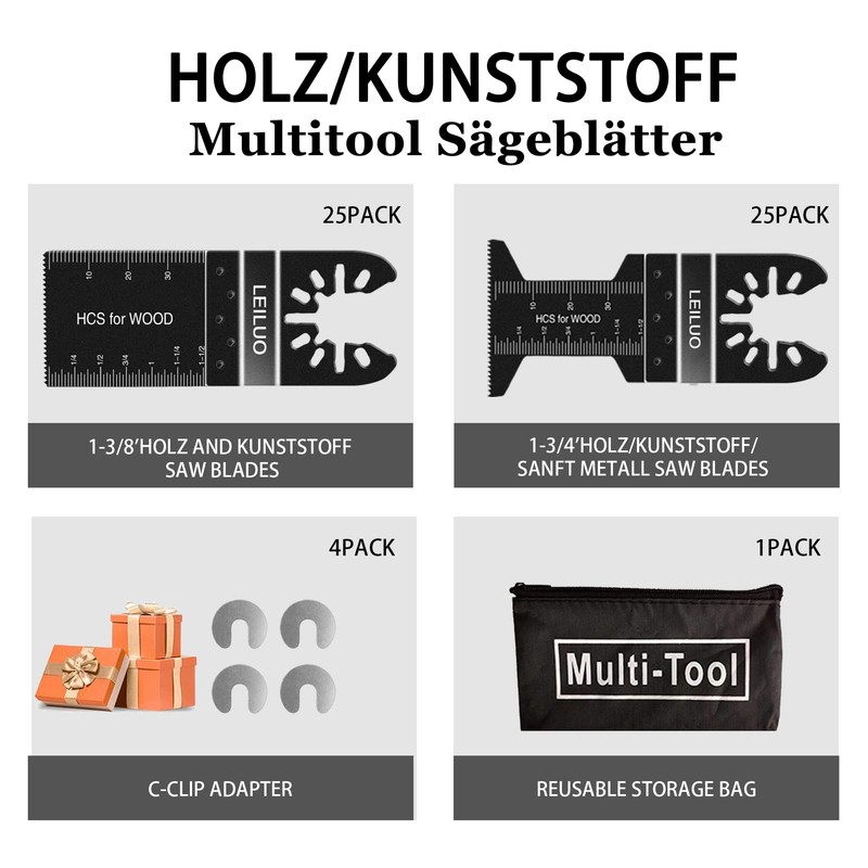 LEILUO Multitool S?gebl?tter LEILUO 50tlg Holz Kunststoff Multifunktionswerkzeug Zubeh?r Set Verpackt in einer Aufbewahrungstasche fr Makita Einhell Dewalt Parkside Ryobi AEG und Mehr