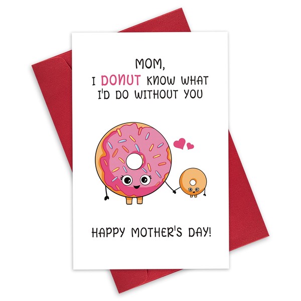 Leinessy Cute Donut Mother's Day Card, Pun Mothers Day Card from Daughter Kids, I Don't Know What I'd Do Without You