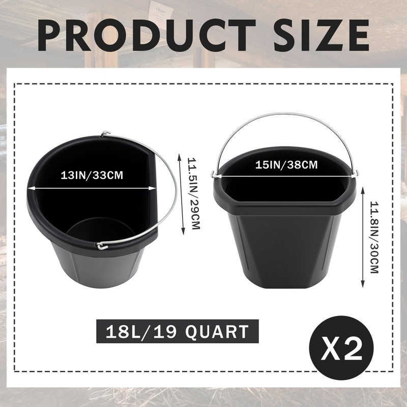 - Large Capacity Design: each bucket has a capacity of 18 liters (19QT), which can meet the needs of the horse's daily drinking water and feed storage, reducing the hassle of frequent additions; This horse feed bucket provides ample space to accommodate a substantial amount of feed, rambunctious animals