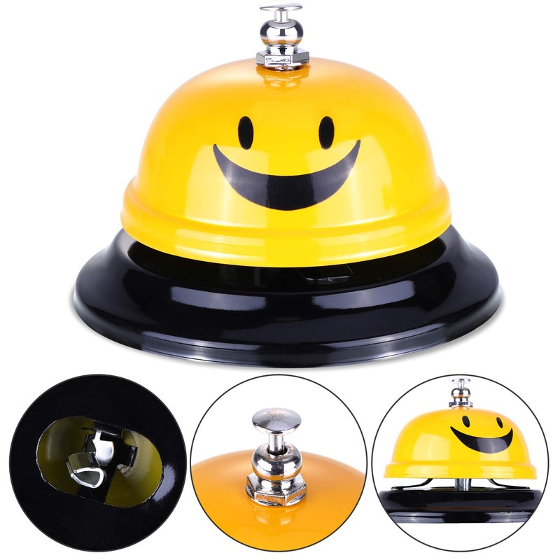- Cute appearance: the customer service bell is designed with smile pattern, it represents a good mood, reflects the purpose of smiling service, with vibrant yellow color, make it eye-catching, it will add more fun experience