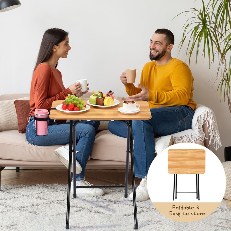 • Versatile and Functional: this multipurpose folding table works as laptop desk, dining surface, or side table as decoration in your living room or bedroom; Cupholder holds beverage, snacks, or even a small vase, making your life convenient and enjoyable