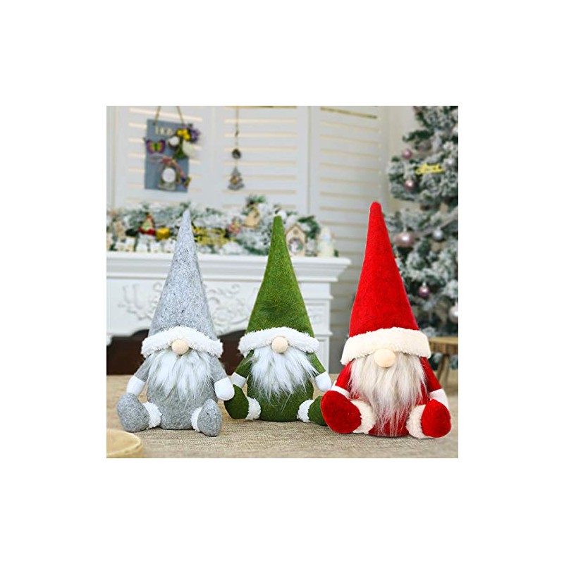 Leipple Gnome Christmas Ornaments - Christmas Gonk Decoration Handmade Swedish Tomte Gnomes - 3 Packs (short legs)