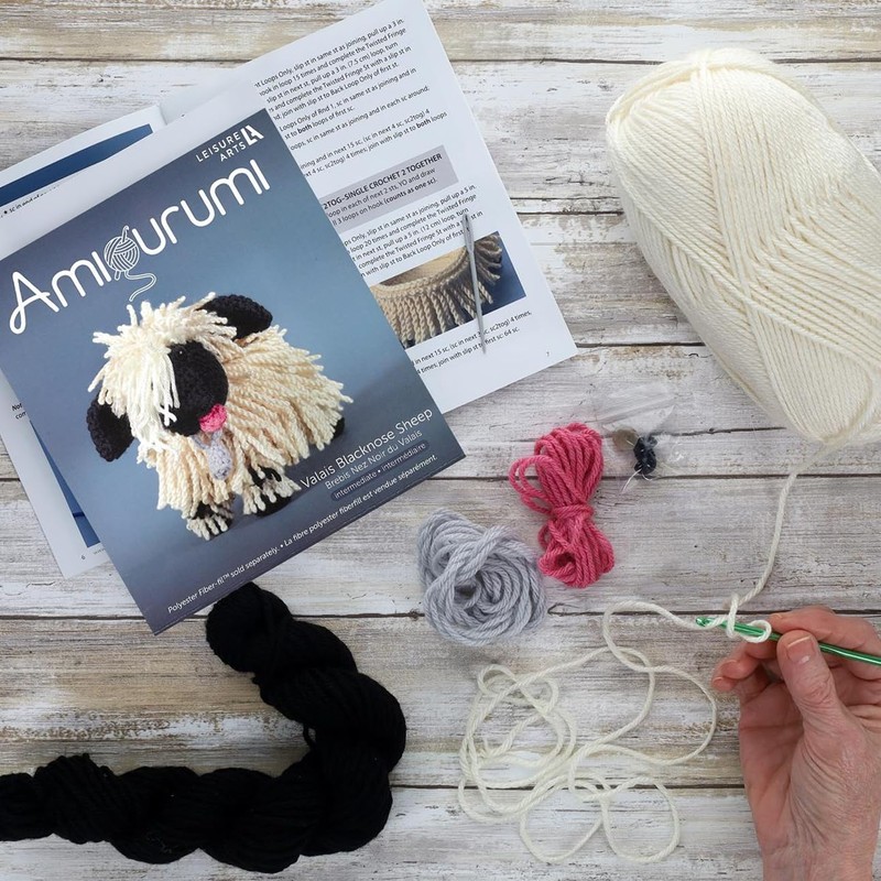 LEISURE ARTS Amigurumi Valais Blacknose Sheep Crochet Kit for Beginners, DIY Animal Crochet Kit for Adults, Cute Plush Stuffed Toy Craft Kit for Gifting
