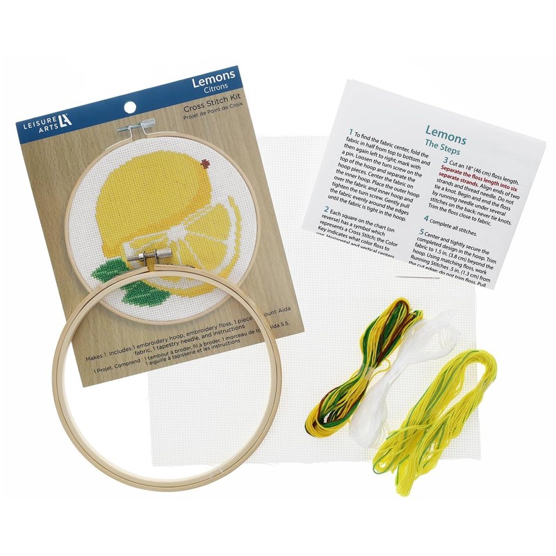 Leisure Arts Cross Stitch Kits, Lemons, 6" – Perfect Cross Stitch Kits for Beginners Adults - Stamped Cross Stitch Kits for Adults Include Designs, Thread & Hoop for Easy Crafting Fun