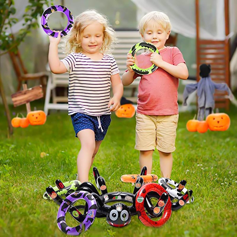 - This inflatable ring toss game set includes 12 rings and 1 spider and 1 inflatable witch hat. Make your Halloween party fun with this inflatable ring toss It also helps children improve concentration and develop skills. Spider ring party game can promote people's hand-eye coordination by throwing and observation