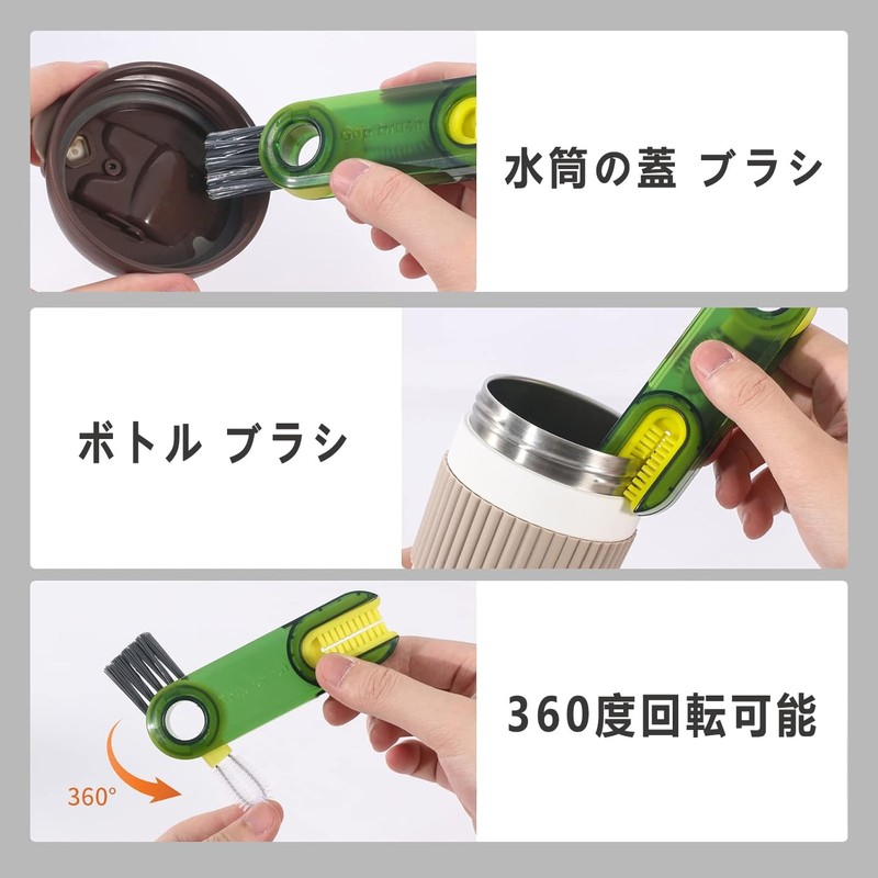 • 【Unique Design】Our bottle cleaning brush consists of 3 parts: 1.U-shaped brush: according to the mouth of the cup to clean stubborn dirt around the cup. 2. Crevice brush: clean the narrow groove inside the lid. 3. Bristle Brush: Clean the groove of the container corners. The brush head can be rotated 360 degrees in one direction (Note: it can only be rotated counterclockwise)