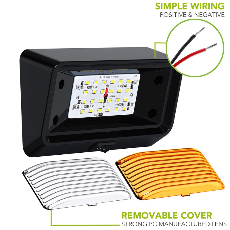 Leisure LED 2 Pack RV Exterior Porch Utility Light with Switch 12v 280 Lumen Lighting Fixture. Replacement Lighting for RVs, Trailers, Campers, 5th Wheels Black Base Clear & Amber Len (Black, 2-Pack)