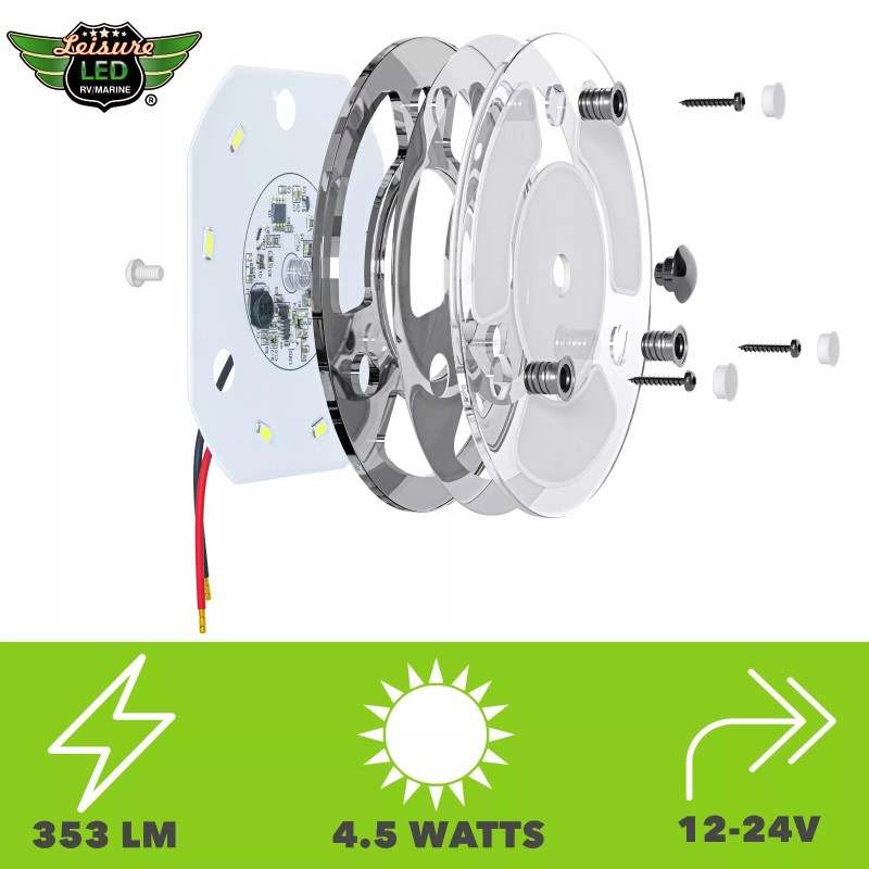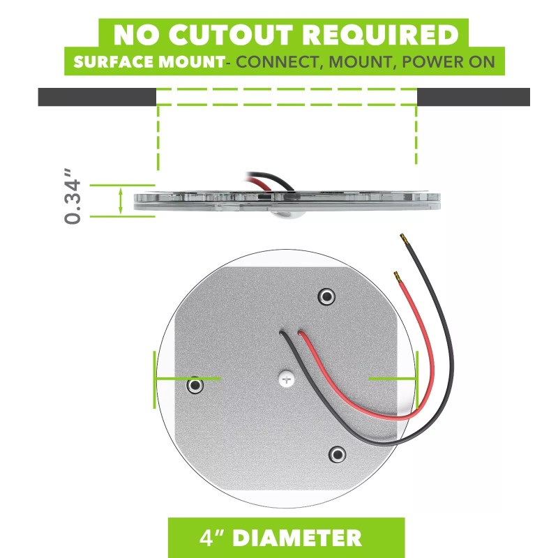 Leisure LED 4IN 12V RV LED Ceiling Multi Color Touch Dimmable Slim Surface Mount Light 4 PK