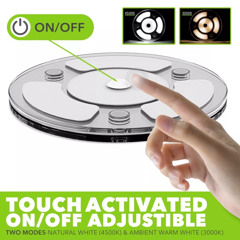 - Switch Type: Touch Activated Power On/Off Switch, & (2) Color Modes