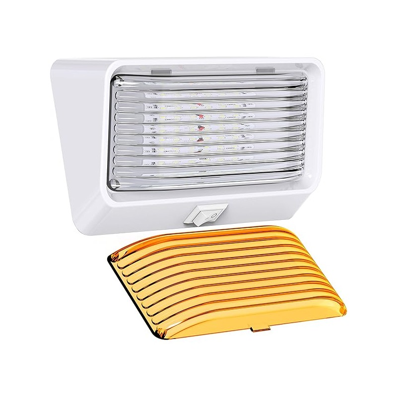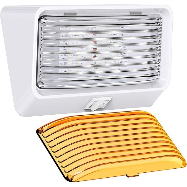 Leisure LED RV Exterior Porch Utility Light with Switch - 12v 280 Lumen Lighting Fixture. Replacement Lighting for RVs, Trailers, Campers, 5th Wheels. White Base, Clear and Amber Lens (White, 1-Pack)