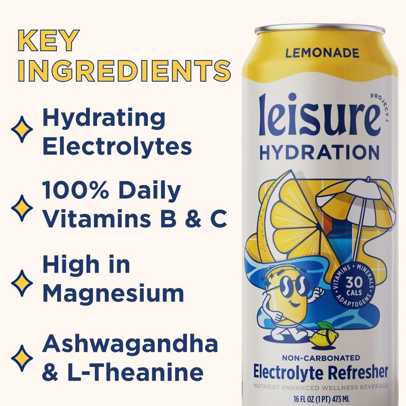 - LIFE IS DEHYDRATING! REFRESH WITH LEISURE: Leisure Hydration beverages contain 700mg of naturally-sourced electrolytes. Infused with magnesium, ashwagandha and L-Theanine. The best healthy drinks for adults to help you feel a little relaxed, and sneaky energized