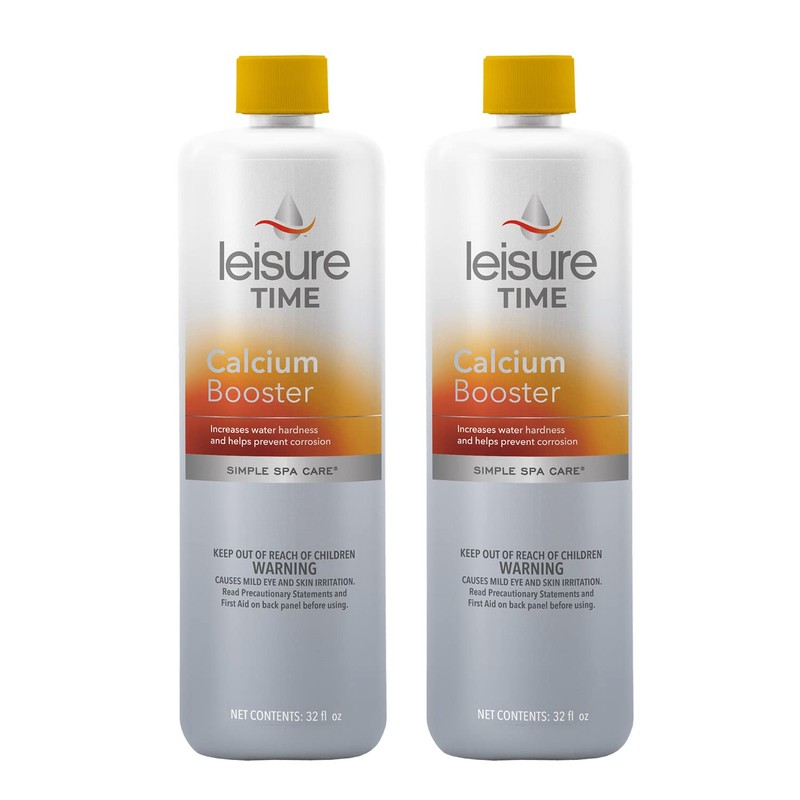 The Leisure Time Calcium Boost liquid calcium hardness booster quickly increases spa and hot tub water hardness to prevent corrosion of pool equipment. Compatible with chlorine, bromine, ozone and biguanide sanitizers. One ounce raises the calcium hardness 7 ppm in 500 gallons of water. Instructions: Turn jets ON to circulate spa water then pour required amount into the water. Run filter for 1-2 hours and then retest water to ensure proper hardness level has been reached. Repeat until proper level of 150-400ppm is obtained.