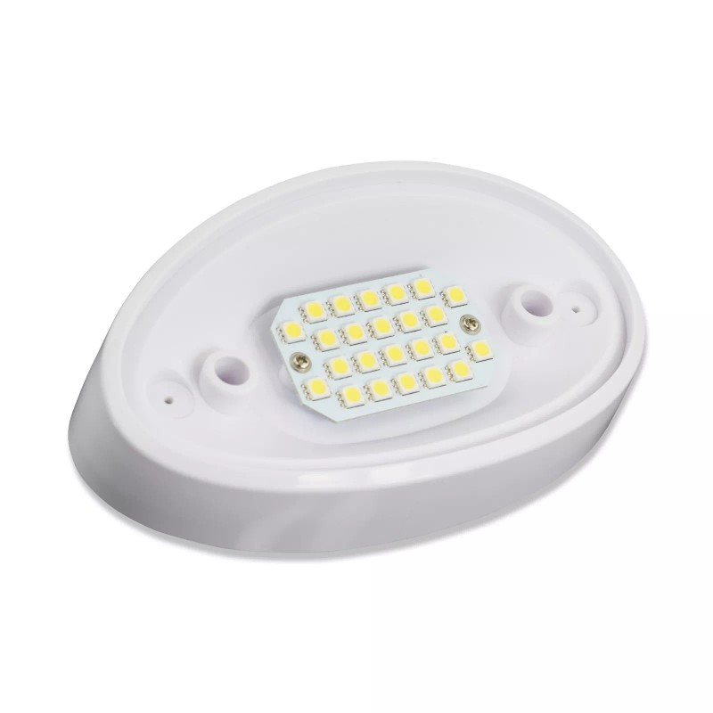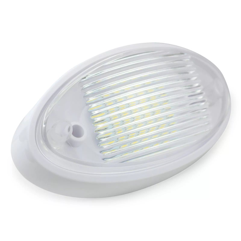 LeisureLED RV LED Porch Light Oval clear amber lens camper RV trailer white exterior --