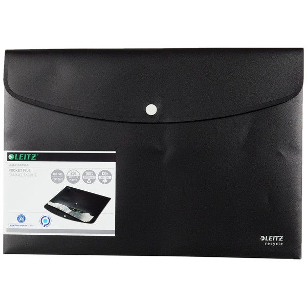 Leitz A4 Sammelmappe mit Druckknopfverschluss, 60 Blatt, 100% recyclebar, Undurchsichtiger Kunststoff, Umweltfreundlich, Recycle-Serie, Schwarz, 46780095