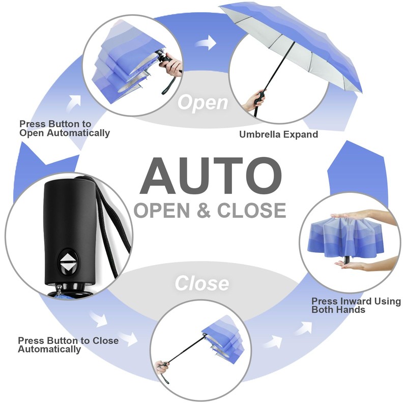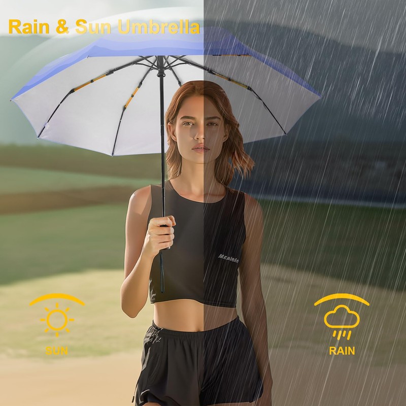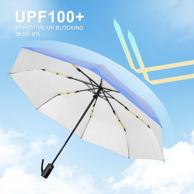 - Sun Umbrella with UV Protection:the UV coated umbrella reflects heat and blocks 99% of UVA, UVB, and UVC solar rays with a UPF 50+ rating. It keeps you cool in the sun and safe in the rain, making it a great lightweight travel sun umbrella for women