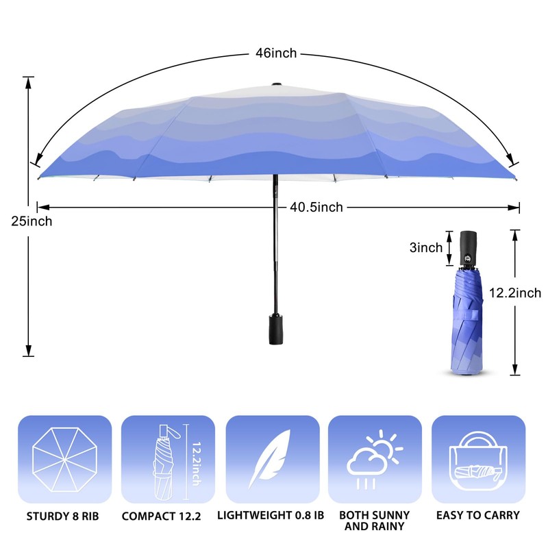 - Compact Umbrellas for Women/Girls:Collapsible umbrella folded size 12.2inch, weight 0.8LB, is portable and lightweight, ideal for on-the-go use. They are designed to fit easily in purses, backpacks, or even pockets, offering protection from rain while being practical and convenient