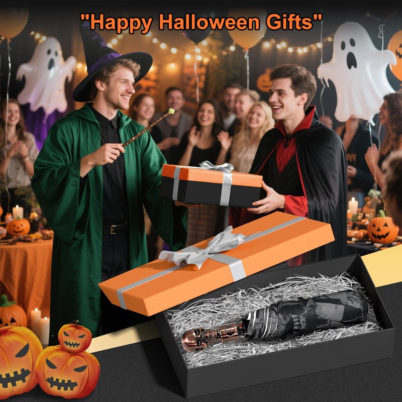 - Gothic Skull Handle: This folding umbrella features a striking skull-shaped handle, perfect for those who love gothic, unique, and fashion designs. Skull umbrellas fit perfectly with the spooky atmosphere of Halloween. Its edgy aesthetic makes it a standout stylish accessory for Halloween, Mardi Gras, or themed events