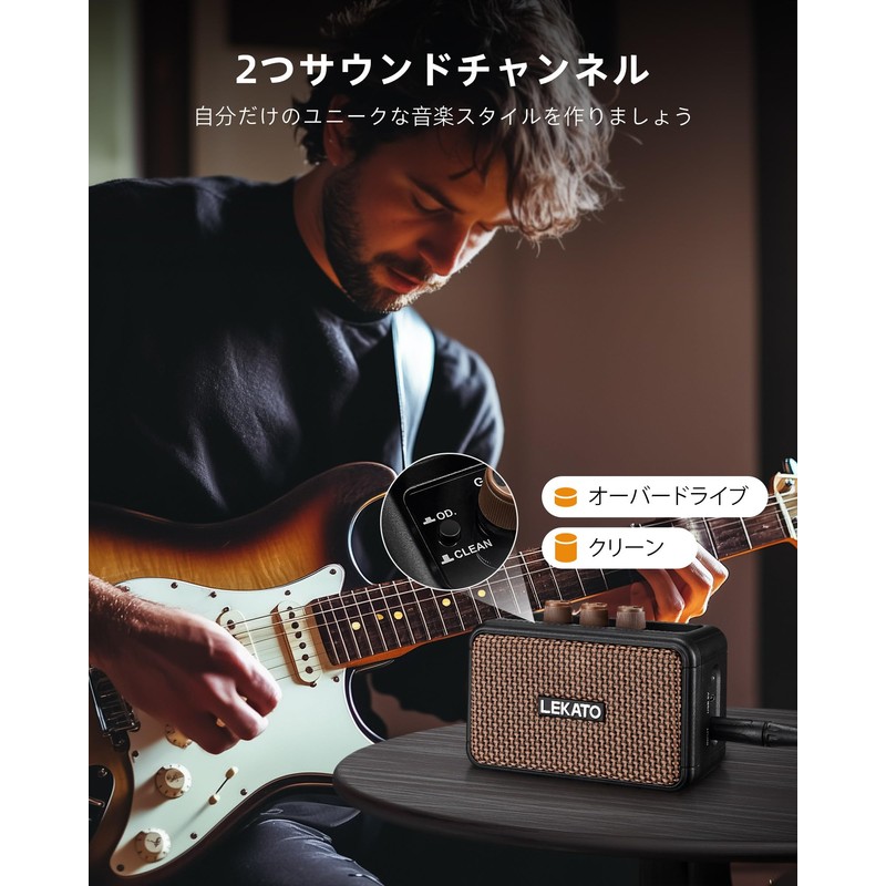 LEKATO Guitar Amplifier, 5 W, Electric Guitar Amplifier, Bluetooth Clean/Over Eve Channels, 2 Sound Channels, Headphone Terminal, For Home Practice, Japanese Instruction Manual Included
