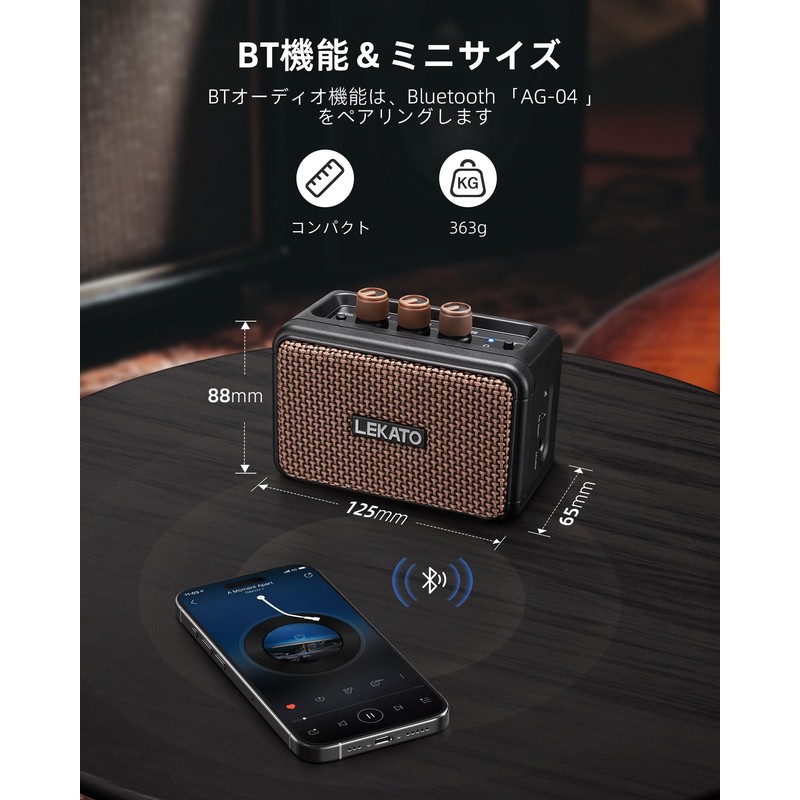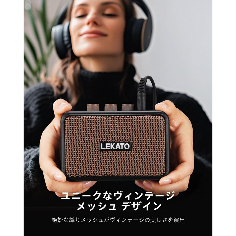 LEKATO Guitar Amplifier, 5W, Electric Guitar Amplifier, Bluetooth Clean/Overdo, Eve Channel, 2 Sound Channels, Equipped with Headphone Terminals, For Home Practice, Japanese Instruction Manual Included