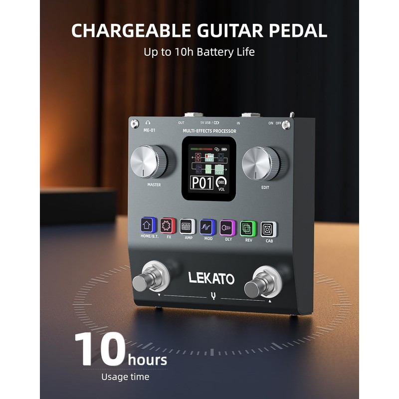 - 🎸RECHARGEABLE GUITAR PEDAL: The effects guitar pedal can be used for up to 10 hours when fully charged. Since it's not powered by an adapter, this rechargeable effect processor can also avoid AC noise and grounding problems.